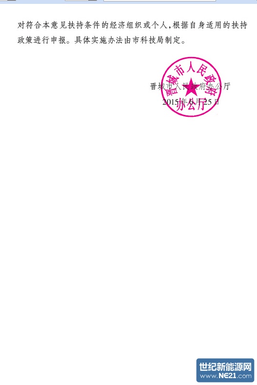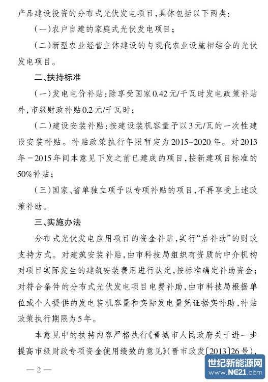 山西省晋城市《关于促进农村地区分布式光伏发电示范应用财政扶持意见》