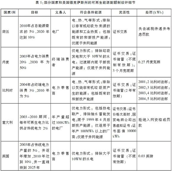 目前国际上已有英国、丹麦、德国、日本等国家实施了可再生能源配额制。