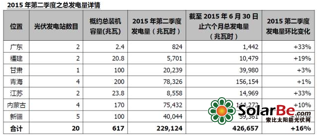2)广东前海保税区电站通过有效的运营管理提升电站使用率,总发电量环比增加33%;