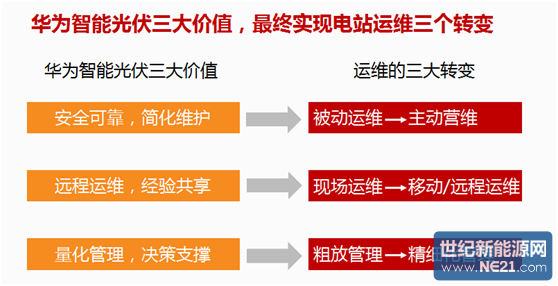 这是我们智能光伏解决方案在营维领域的三大价值和三个转变,如下图:
