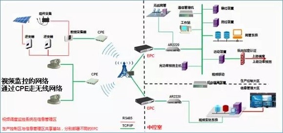 LTE无线传输方案全站监控拓扑图,做到全电站数据采集,利用大数据技术提供电站全过程分析