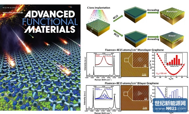 图:Advanced Functional Materials 背封面(左);研究论文的实验过程及制备的单、双层石墨烯的各项性能表征(右) 索比光伏网 https://news.solarbe.com/201507/14/187675.html