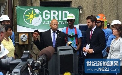 2015年7月7日,美国国会众议员康明斯在马里兰州的巴尔迪摩市宣布太阳能新政(图片来源:Comgressman Cummings)