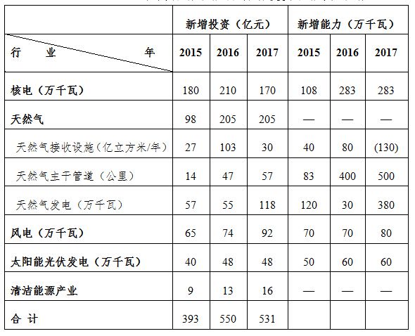 2015—2017年我省清洁能源新增投资和能力计划