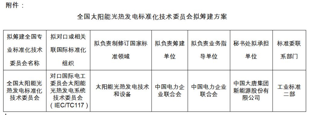 原标题:关于对拟筹建的全国太阳能光热发电标准化技术委员会进行公示的通知