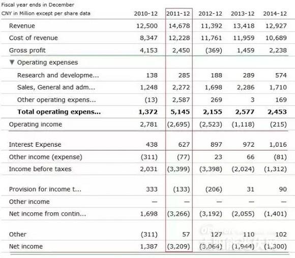 英利2010-2014损益表(单位:百万元,人民币。来源:NYSE)