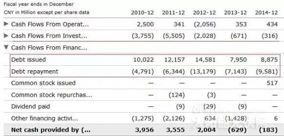 英利2010-2014现金流量表(单位:百万元,人民币。来源:NYSE)
