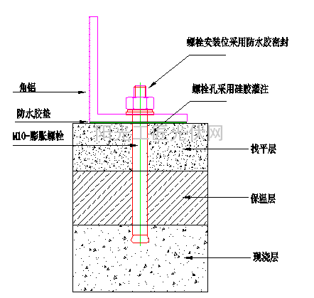 图4混凝土屋面上膨胀螺栓与屋面的固定方法和屋面防水措施