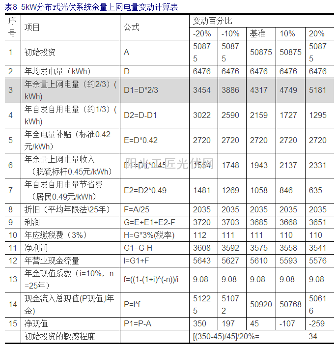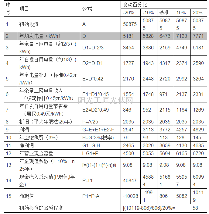 在此基础上,计算了建设系统投资成本及现金流,最后,重点采用敏感性分析法分析了初始成本等3种变量对投资净现值的影响。文章最后给出投资分布式光伏电站的有关建议。