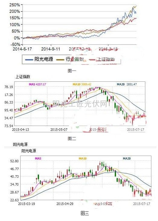 首先来看图一,这是一幅鸟瞰图,可以大致看到阳光电源走势强于上证指数,弱于行业指数。再看图二和图三,这两幅图为阳光电源近期走势和上证指数的对比,从我们发现,阳光电源虽然在整体幅度上略强于上证指数,但是在涨跌步调上却与上证指数完全一致,表现中规中矩。但可惜的是,无论是上证指数还是阳光电源目前都处于空头行情中,尤其是阳光电源,该股macd指标进入历史最低点,处于完全超跌状态,那么阳光电源是否会否极泰来呢?从技术层面上讲超跌后的大幅反弹是完全可能的,但是如果技术分析能够解决一切问题的话,那么股票也就不值得分析了,一只股票能否走出好的趋势,除了技术层面的支撑,更多的还得靠该公司自身的表现,所以让我们继续往下分析,看看该公司的基本面有没有什么利好支撑。
