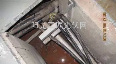 下面列举一些其他安全质量问题,图25所示的案例会降低系统的绝缘性,容易出现漏电的危险。图(a)所示为电缆被螺丝刺破;图(b)所示为管道边缘的电缆未实行保护措施,电缆与管道摩擦易破损,影响绝缘性;图(c)所示为电缆沟内有水,光伏电缆进水,这无疑会降低电缆的绝缘等级。