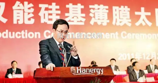 图注:2011年12月25日,浙江长兴汉能硅基薄膜太阳能电池生产基地建成投产,李河君发表致辞