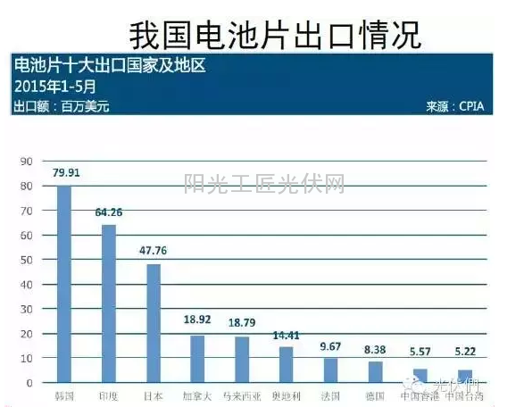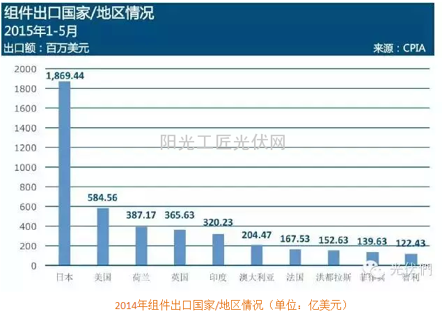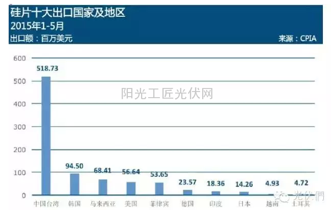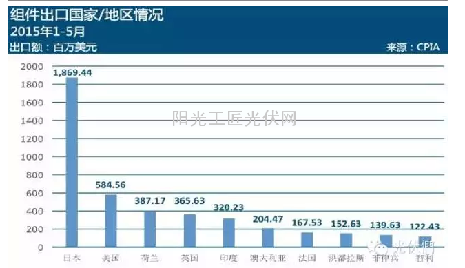 ˉ 2015年1-5月,我国光伏组件出口至欧洲地区约为11.1亿美元,占总出口额的21%;