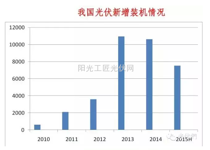 ˉ 2030年,水电500GW (非常有挑战),风电400GW (2014年96GW),光伏500-600GW (2014年28GW), 物质50GW (核电200GW,几乎是2014年的10倍)。因此需通过增加风电和光伏来实现,需增加800GW。2015年上半年光伏产业发展情况