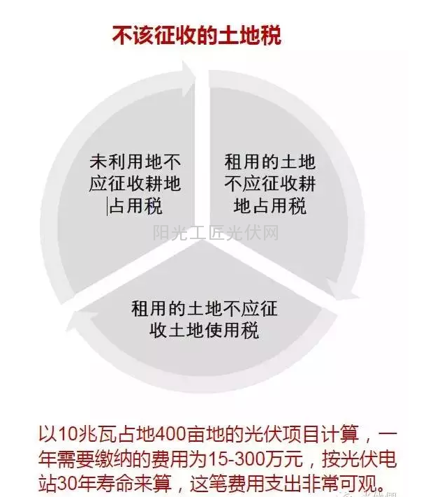 ·政府乱征光伏土地税,造成电站开发企业税收过重,电站收益难以保证。土地税问题正在成为制约我国光伏发展的新矛盾;