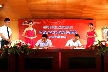 农业应用领域的大力开发,是汉能切入分布式能源的重要一步。在当天的项目签字仪式上,汉能全球光伏应用集团农业应用事业部(中国)副总裁王俊安表示,光伏农业是新兴的产业发展方向,具有巨大发展潜力。独秀山观音洞景区汉能示范基地项目是汉能薄膜发电技术与高效农业技术相结合的典范,也是对安庆市“绿色能源农业产业化建设”的积极响应,对安庆市调整能源结构、推动能源生产和消费革命、促进生态文明建设具有重要意义。汉能将大力推广建立绿色低碳城市的“安庆模式”,积极推动绿色能源农业产业化,打造特色型光伏生态农业。