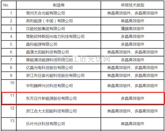 东方日升成功入围”领跑者“计划第一批认证申请企业清单