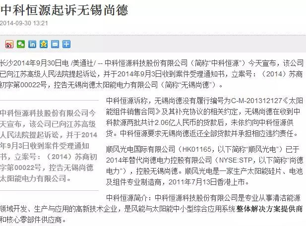 顺风光电前述高管则透露,顺风光电一共给中科恒源支付过两次款项。第一次是通过国开行的贷款方式来操作的,这笔钱是去年顺风光电和中科恒源合作的电站项目质保金,总计4300万元,本应在并网一年后(2015年)交给中科恒源,但考虑到后者急需用钱采购一些产品,便提前支付给了中科恒源。