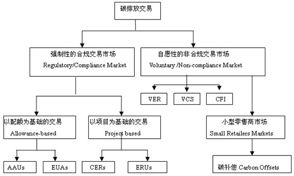关于碳交易门槛很高的问题,这张图描述了先前国际碳交易的主要市场情况和产品分类。国内模式也是一样,强制性的减排就是配额交易,自愿性的减排就是CCER交易。