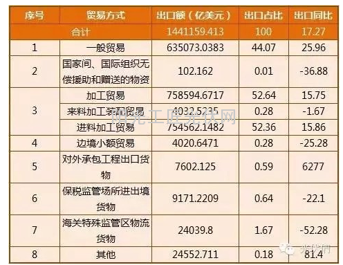 2014年1—12月份光伏电池组件出口贸易方式