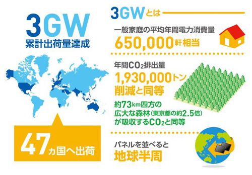 索比光伏网讯:SolarFrontier于2015年7月23日宣布,该公司的“CIS薄膜太阳能电池模块”供货量累计达到了3GW(300万kW),最大输出功率相当于3座典型的原子能发电装置(核电)。该公司称设想的年发电量约为3679GWh,相当于约0.6座核电。