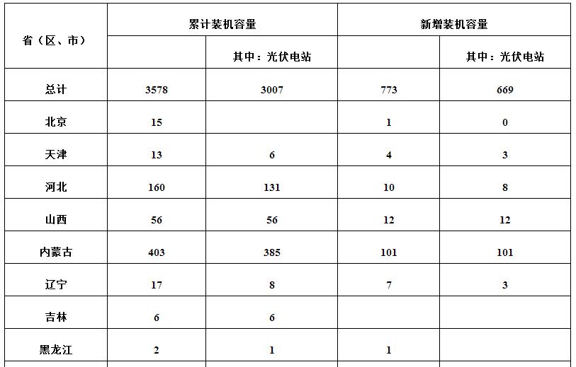 全国各省(区、市)中,累计光伏发电装机容量超过100万千瓦的达8个,分别为甘肃578万千瓦、新疆(含兵团)570万千瓦、青海470万千瓦、内蒙古403万千瓦、江苏302万千瓦、宁夏239万千瓦、河北160万千瓦和浙江143万千瓦。上半年新增装机容量较大的地区为:新疆(含兵团)214万千瓦、内蒙古101万千瓦、浙江70万千瓦、甘肃61万千瓦、青海58万千瓦和江苏45万千瓦。全国各省(区、市)2015年上半年光伏发电建设信息简况详见附表。