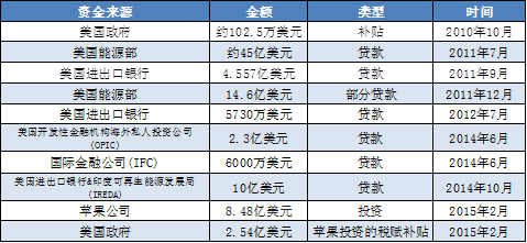 以美国最大的薄膜太阳能企业First Solar为例,笔者统计公开报道的数据发现,近五年来这家公司共收到美国政府各类补贴和贷款总额近90亿美元(下图)。与此同时,另一家太阳能企业Solar city,这些年也获得政府约25亿美元税收优惠、补贴和政策性贷款。