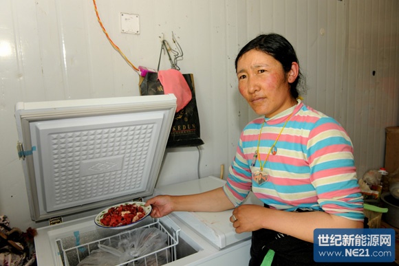 7月29日,玉树县上拉秀乡一户牧民正在家中看电视,冰柜中储藏着新鲜的牦牛肉,生活其乐融融。自去年8月以来,黄河水电公司履行央企社会责任,为玉树地区牧民发放户用光伏发电系统,解决了13.3万人口的基本用电问题。当地牧民纷纷购置了电冰柜,用于冷冻储藏牦牛肉,解决了夏季不敢屠宰牛羊的问题。说起光伏发电带来的便利,牧民们心存感激地说:“黄河水电,瓜正切(谢谢)!”