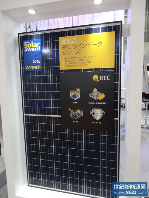 “PV Japan 2015”上展示的“REC TwinPeak Series”(摄影:日经BP社)索比光伏网 https://news.solarbe.com/201508/04/186617.html