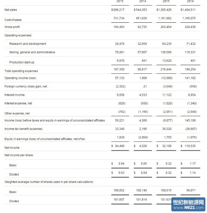 华尔街日报报导,First Solar 表示,2015 年营收预估将达 35-36 亿美元,优于 Thomson Reuters 调查的 34.4 亿美元预估值;每股盈馀预估区间为 3.30-3.60 美元,远优于分析师预期的 2.36 美元。First Solar 第 2 季毛利率自一年前的 17% 升至 18.4%。