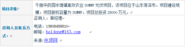 项目名称:千亩中药园半堤镇高效农业30MWP光伏项目