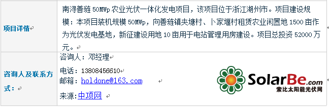 项目名称:南浔善琏50MWp农业光伏一体化发电项目