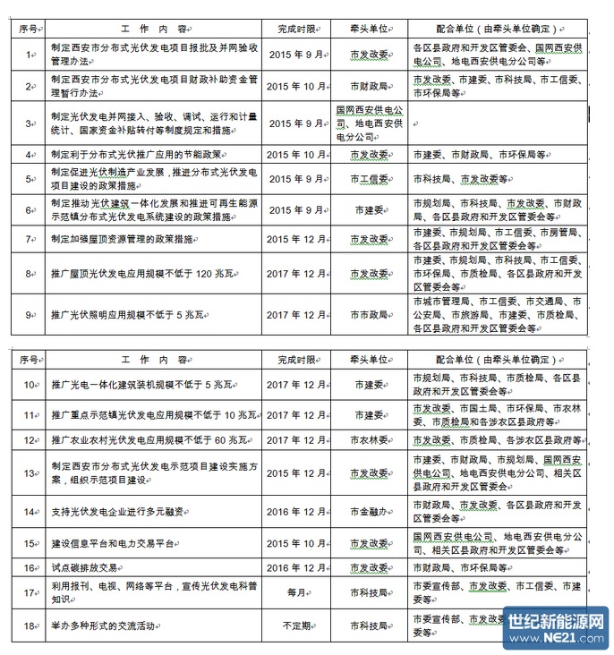 附件:西安市推进分布式光伏发电应用实施方案工作任务分解表