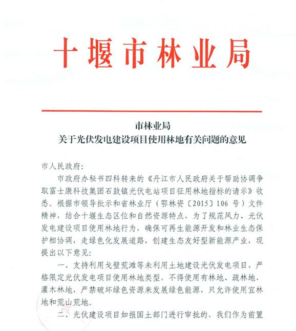 原标题:十堰市林业局关于光伏发电项目使用林地有关问题的意见