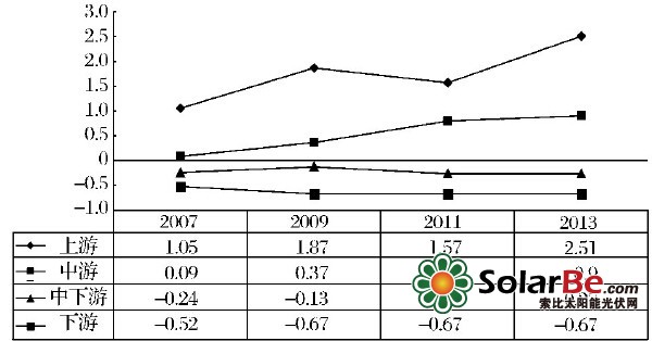 图1 2007-2013全球光伏产业链竞争力变动趋势