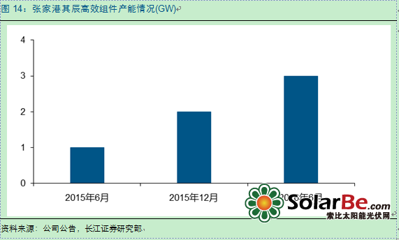 此外,张家港其辰子公司徐州其辰目前在建1GW高效组件生产线,投资6.6218亿元,计划2015年10月开始施工,2016年中试生产。
