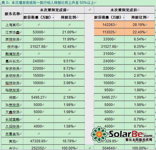 公司本次非公开增发对象上海其印及江苏协鑫均为公司实际控制人朱共山家族企业,其中上海其印由朱钰峰(与朱共山为父子关系)100%持有。上海其印与江苏协鑫已签署《一致行动协议》,因此本次增发完成后,江苏协鑫依然为公司控股股东,一致行动人持股比例上升至50%以上。
