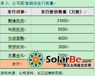 同时,公司拟以1.26元/股的价格,向融境投资、裕赋投资、长城国融、辰祥投资和东富金泓非公开发行不超过5亿股,募集资金不超过6亿元,用于张家港其辰2GW高效组件项目的运营资金、支付本次并购交易的税费及中介机构费用。