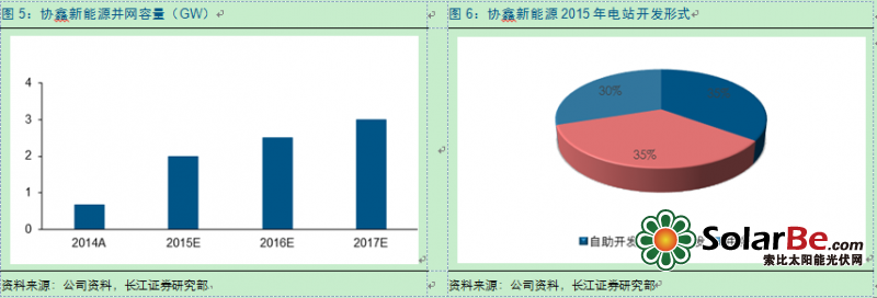 协鑫集团控股下的专业从事光伏电站开发、建设和运营一体化的新能源公司。截止2015年1月27日的总并网容量为667.5MW,新增已开工的在建项目为541MW,2015年、2016年及2017年新增并网容量分别为2.0GW、2.5GW及3.0GW。公司的项目开发分为自建、联合开发和并购三种方式。今年2GW的目标中,预计自主开发约35%,联合开发约35%-45%,并购约20%-30%。
