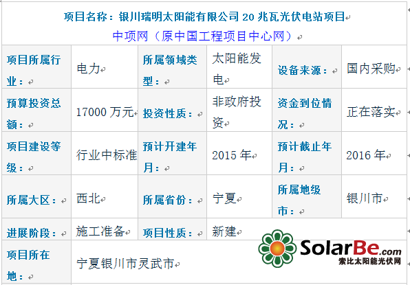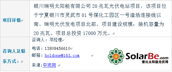 (招标)银川瑞明太阳能有限公司20兆瓦光伏电站项目