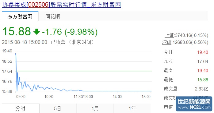 近日,连续大涨的协鑫集成(002506)今日涨停开盘,但随着大盘走势下沉,从涨停到跌停,半日振幅达19.95%。截至目前,该股报15.88元。 目前市值400亿较昨日整整跌去近50亿人民币。