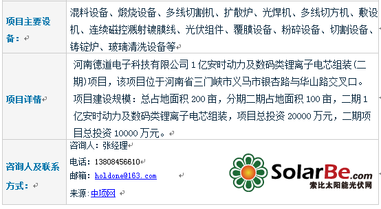项目名称:1亿安时动力及数码类锂离子电芯组装(二期)项目