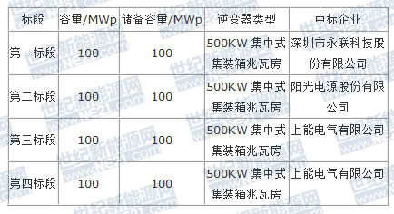 根据中标公告显示:深圳市永联科技股份有限公司、阳光电源股份有限公司、上能电气有限公司斩获本次400MW合约及400MW储备合约。总计800MW.