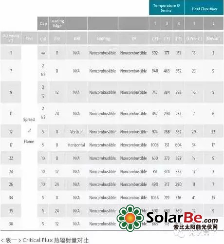 耐火等级评估 — 此部份将由光伏面板本身制作的材料属性所决定,其耐火等级通常只能达到 UL 790 标准中规定的最基本 C等级,而达不到屋面系统一般所要求的最高 A 等级,故当二者安装在一起的时候,就只能通过改变安装方式或加上额外的防护等措施提高共同的耐火等级。事实上,UL 在通过大量的对比实验后,也发现只有当光伏面板和屋面间的垂直距离为 0(意指无夹层)或者是安装完全无开孔的挡板,才能通过测试。