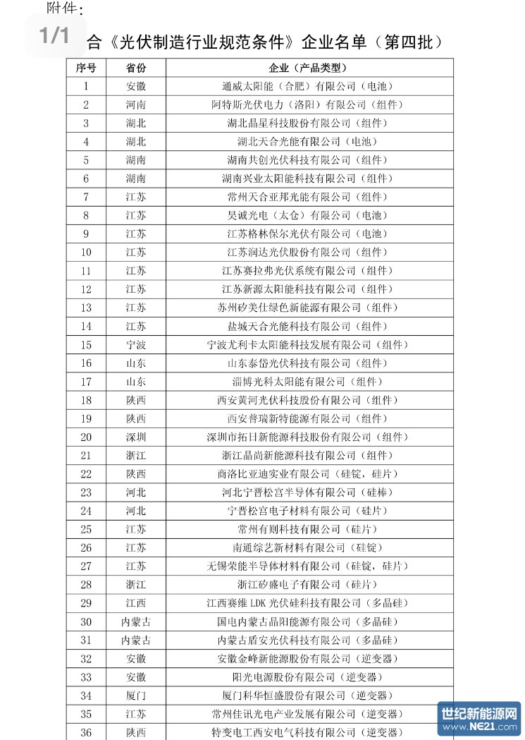 附件:符合《光伏制造行业规范条件》企业名单(第四批)