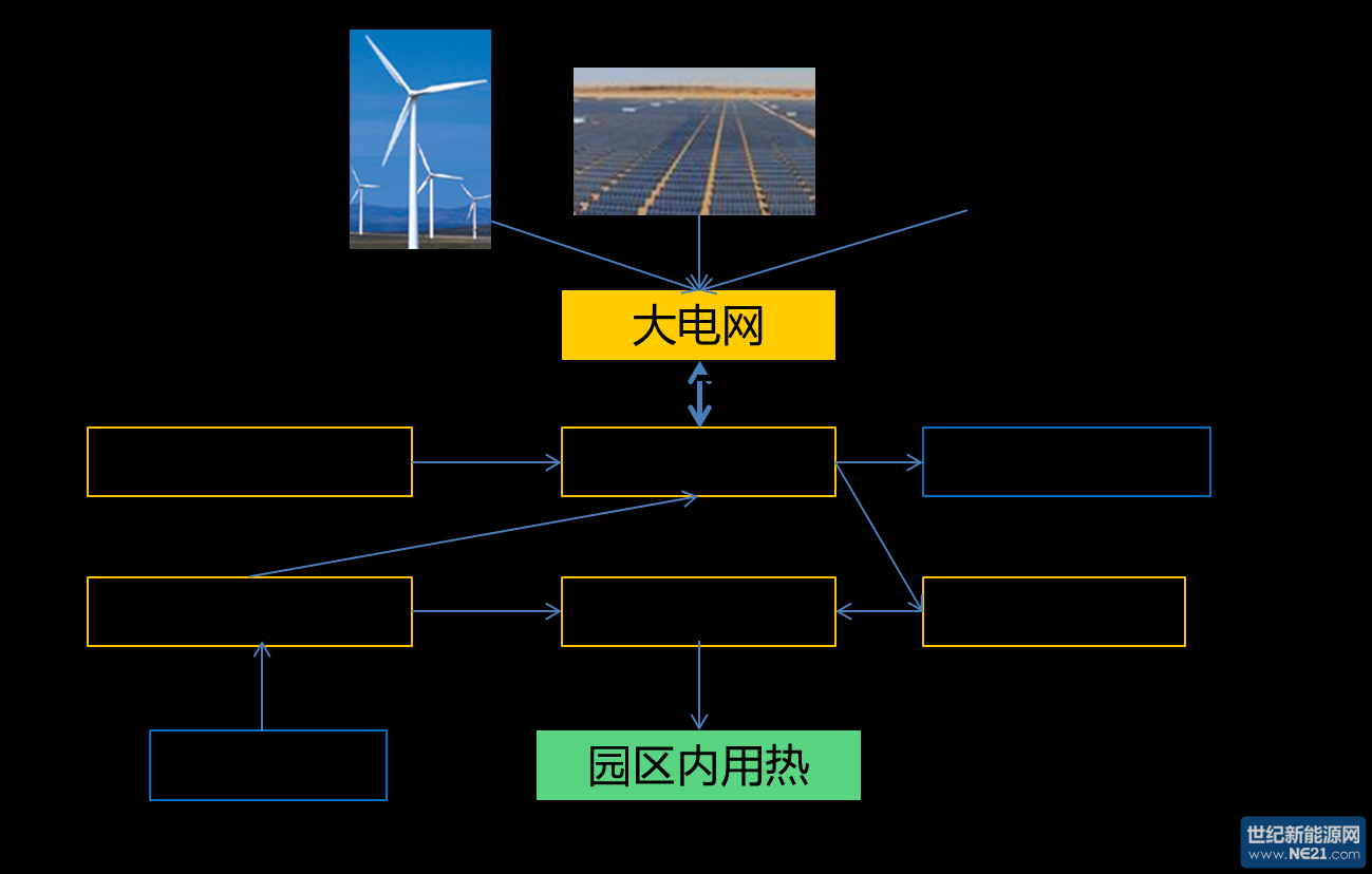 首先是我们今天经常说的微网。在柏林有一个很有名的欧洲能源园——EUREF Energy Campus,这个园区是按照2050年的二氧化碳排放标准设计的。2050年二氧化碳相对于1990年要减排80%,关于这个这个园区有句口号:2050年的德国,你今天见得到。在这个园区中有风光电(光伏和小风电)。微网最重要的一点是,在电多的时候,要想办法把发的电吃进去,例如启动热泵制热,尽力不把多余的电力输入到电网,因为当微网中电力过多的时候,整个电网的电力也过多。如果电力不够的时候,就使用热电联供供电或者使用以前存储的热力,不开热泵。