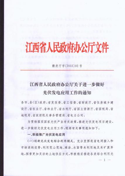 原标题:江西省人民政府办公厅关于进一步做好光伏发电应用工作的通知