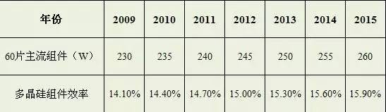 从上表可以看出,在6年的时间里,光伏组件的转化效率从14.1%提高到15.9%,1MW发电单元中光伏方阵的数量大约可以减少12%。随之而来,汇流箱、直流电缆、支架、基础等配套设备的用量都会随之减少,光伏电站的BOS成本(光伏电站场区范围内除光伏组件以外其他设备的成本)下降约4%。