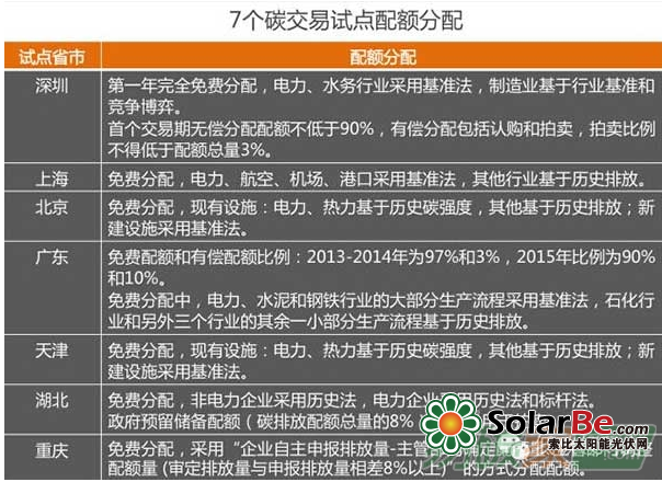 碳排放权的初始分配分为免费、定价出售和拍卖三种方式。除了拍卖,无论是免费还是固定出售,都有一定的分配原则,主要分为两种:祖父制原则和基准线原则。目前,7个碳交易试点地区主要采用企业历史排放水平(“祖父原则”)同时辅助行业基准线法则的方法进行碳排放权的配额分配。