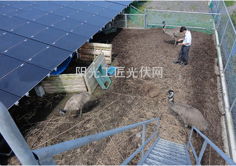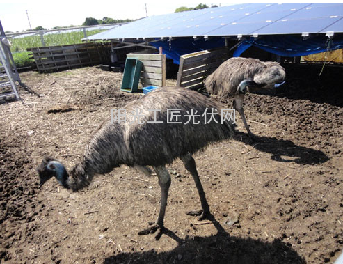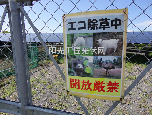 为了除草,该电站中除了山羊和绵羊外,还放养着鸸鹋。鸸鹋原栖息于澳大利亚,是鸵鸟的同类,成年鸸鹋身长能达到1.6m左右。体型仅次于鸵鸟,除了在动物园中能经常见到外,因可获油和肉,还作为家畜饲养。山口县等就有“鸸鹋牧场”。